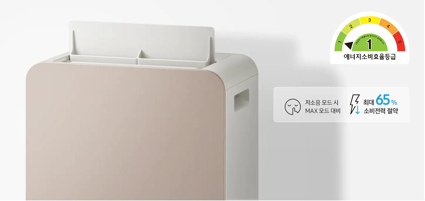 저소음 모드로 사용할 경우 MAX 모드 대비 소비전력이 최대 65 % 절약됩니다.