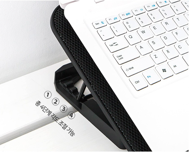 쿨링패드의 각도를 조절해서 손목의 피로도도 현저히 낮춰줘서 노트북 사용자의 작업환경이 더 나아집니다
