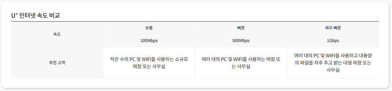 - 100Mbps / 500Mbps / 1000Mbps(1Gbps) 로 구분되며 유선랜 속도(WAN)을 의미합니다