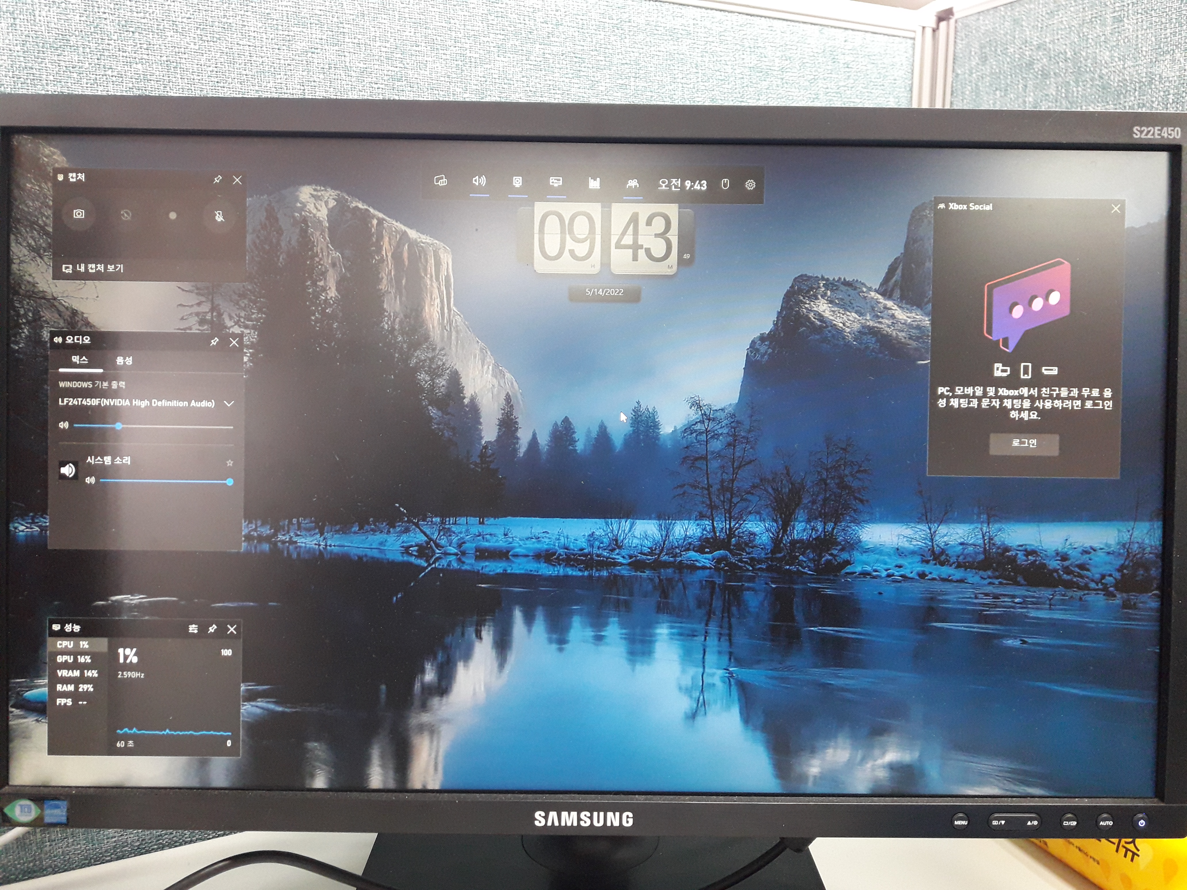 2. 모니터 화면위에 Xbox 화면이 겹쳐 뜬다 왼쪽상단이 스크린캡쳐/동영상캡쳐 탭이다(아래사진)