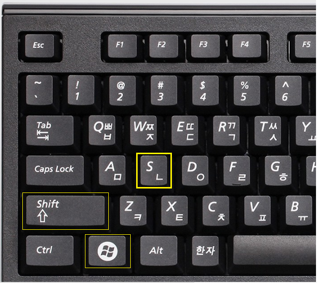 1.Windows 로고 키 + Shift 키 + S를 누른다