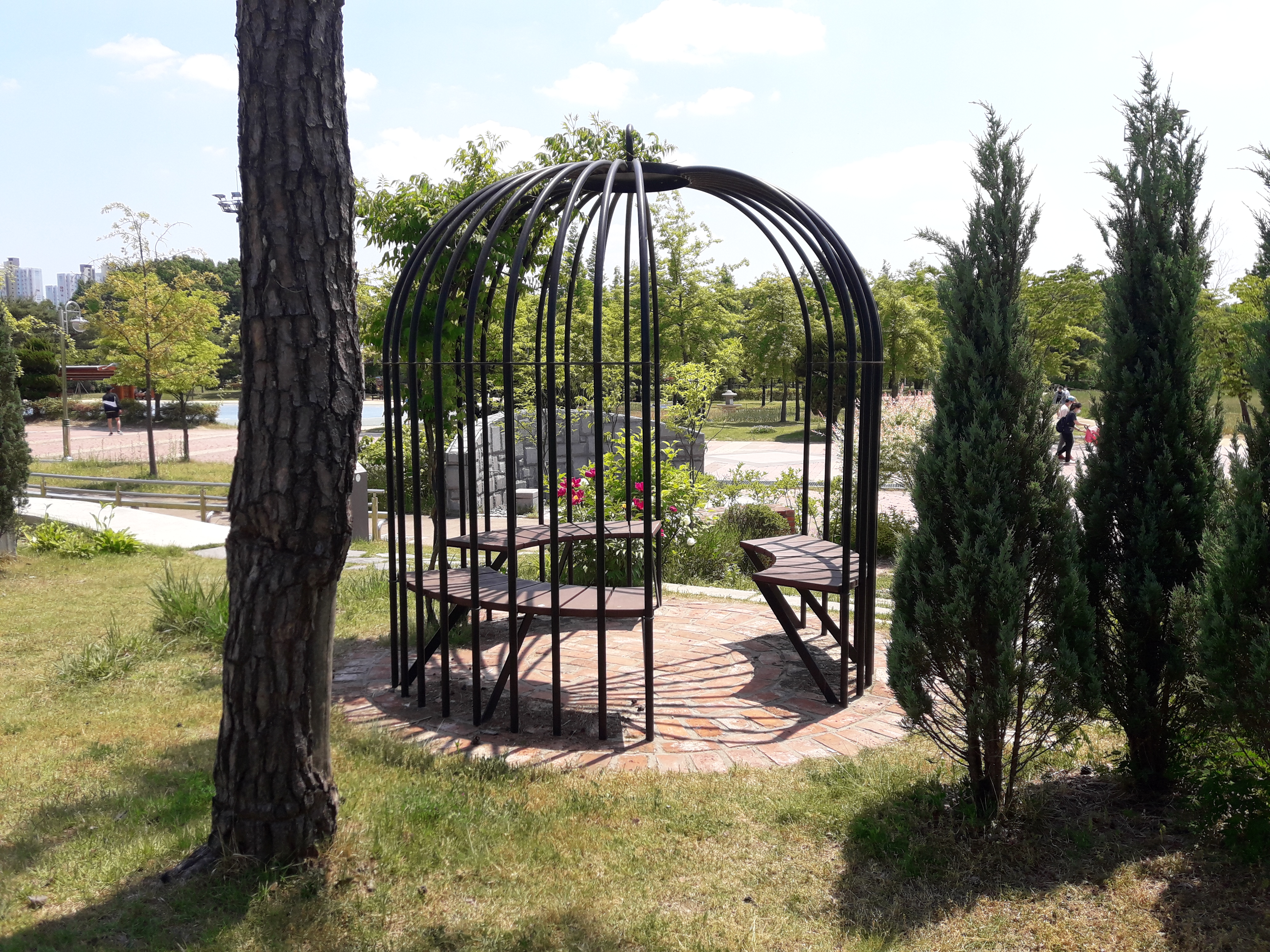 산책로와 꽂과 의자 등 테마가 있는 조경물들이 구경거리를 제공한다