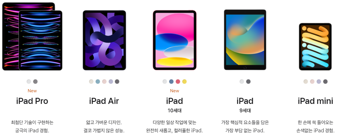 | 아이패드 | 아이패드 10세대 | 아이패드 에어 5세대 | 아이패드 프로 4세대 11 | |