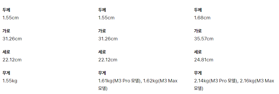 맥북프로 14.2(m3) / 맥북프로 14.2(m3 Pro,m3 Max) / 맥북프로 16.2(m3 Pro,m3 Max)