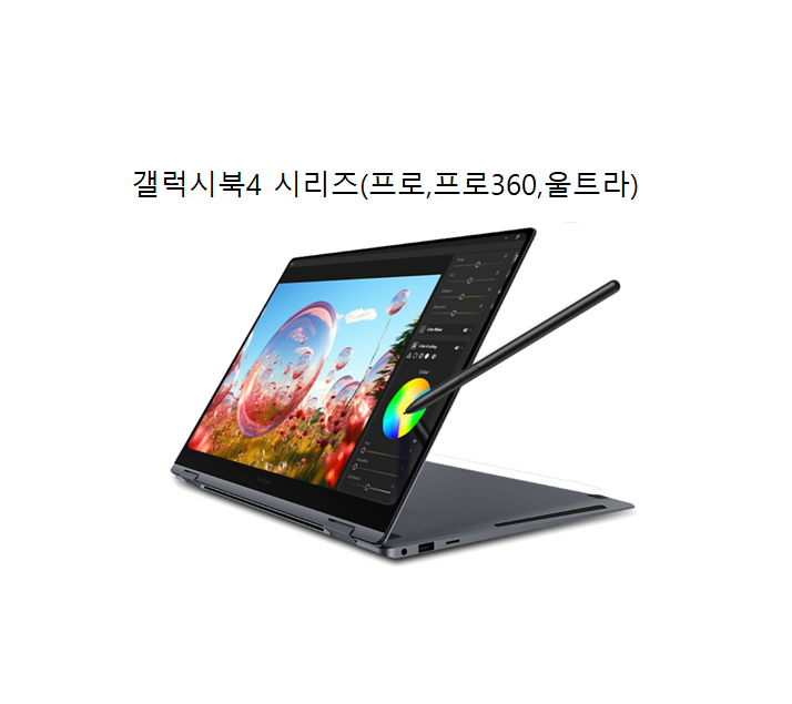 갤럭시북4 프로/갤럭시북4 프로 360/갤럭시북4 울트라 모델로 화면사이즈는 14인치/16인치 두 종류이구요