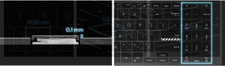 - 향상된 숫자 키 레이아웃 : 계산기 기능을 위한 핫키와 더 직관적인 숫자 입력을 위해 풀사이즈 키피치와 일치하도록 간격이 넓어져서 데이터 처리작업에 유리합니다