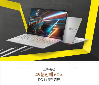 에이수스 비보북 고 15는 고속충전을 지원해서 49분만에 배터리를 60%까지 충전할 수 있습니다