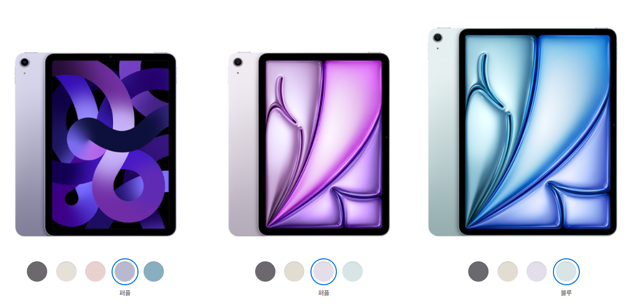 | 색상 | 블루,스타라이트,스페이스그레이,퍼플,핑크 | 스페이스그레이,스타라이트,퍼플,블루 | ||