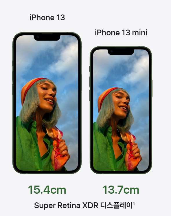 아이폰13과 아이폰13미니는 크기와 무게가 다르며 객관적인 스펙은 동일합니다