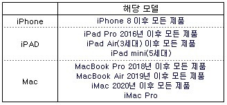 2016년부터 출시된 Apple 제품에 True Tone 기술이 적용되었으며 해당 모델은 아래와 같습니다.