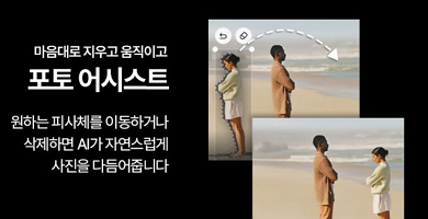 AI를 통해 사진 속 피사체를 마음대로 이동하거나 삭제할 수 있으며 삭제 혹은 이동하면서 생기는 빈 공간은 AI가 주변 환경과 어울리게 보정해주는 기능입니다.