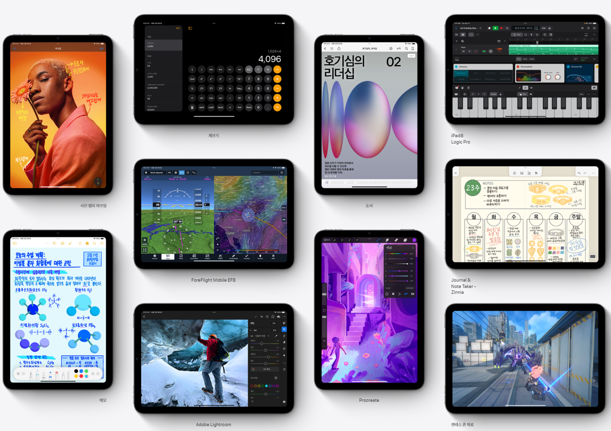 | 영상 통화 | - FaceTime 영상 통화 - 센터 스테이지 - Wi‑Fi 또는 셀룰러 네트워크를 이용해 iPad에서 모든 FaceTime 지원 기기와 가능 |