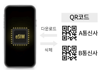 eSIM이란 직접 기기에 꽂아서 사용하는 물리적인 SIM 카드가 아닌 처음 출시될 때부터 모바일 기기에 내장되어 나오는 SIM 카드를 말합니다.eSIM은 내장형 SIM 카드이기 때문에 프로파일 다운로드 수수료만 내면 이동통신사에서 제공하는 QR코드를 통해 대리점에 직접 들를 필요 없이 비대면 · 온라인으로 개통을 진행할 수 있습니다.