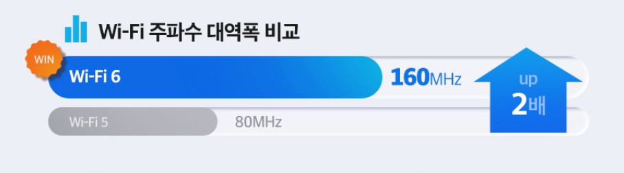 802.11ac 규격에서는 5GHz 대역만 지원을 했지만 Wi-Fi 6에서는 5GHz와 더불어 2.4GHz를 사용할 수 있습니다. 다만, 2.4GHz 대역은 고도의 복호화 과정을 적용하기 쉽지 않을 것으로 보이고 광역 커버리지를 위해서 속도와 레이턴시를 포기하는 용도가 될 가능성이 높습니다. 그렇지만 802.11n의 2.4GHz 송출 방식보다는 같은 주파수 대역에서 Wi-Fi 6의 송출 방식이 훨씬 더 좋은 망품질을 보여줄 수 있습니다.