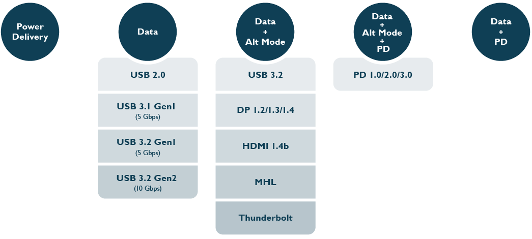 USB-C DisplayPort Alt Mode와 유사하게 USB-C와 Apple 제품에서 널리 사용되는 썬더볼트 전송 인터페이스가 호환되는지 여부도 중요합니다. 간단하게 말하면 Alt-Mode 기능을 통해 USB-C가 썬더볼트 인터페이스의 최신 버전인 썬더볼트3/4를 지원할 수 있다는 것입니다. 그러나 USB-C 포트가 썬더볼트 연결을 지원할 수 있으려면 썬더볼트 기능은 제조사에서 장치의 명시적으로 설계해야 합니다. 추가로 썬더볼트3/4 자체가 DisplayPort 기능도 지원합니다.