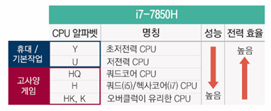☞ "7"이 붙을 경우에는 저전력 CPU