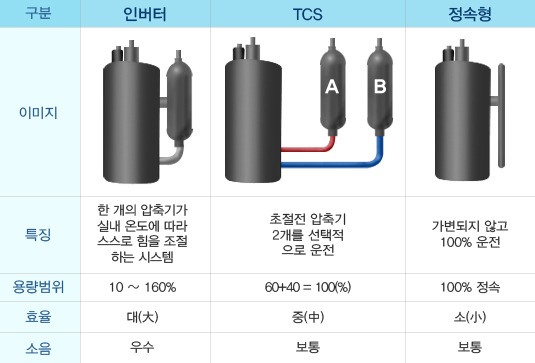 -실내 온/습도에 따라 스스로 운전 속도를 조절 * 장점: 에너지 효율이 좋고 전기 요금 절감에 매우 도움됨