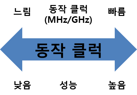프로세서는 스마트폰의 모든 연산 작업, 통신 모듈, 그래픽 작업 등의 제어가 이루어지는 중앙 처리 장치입니다. 프로세서 내의 핵심 연산 회로인 코어(Core)의 연산 처리 속도는 스마트폰 전체 성능을 좌우하게 되며, 그 속도의 빠른 정도를 나타내는 수치가 바로 클럭(진동수)입니다.